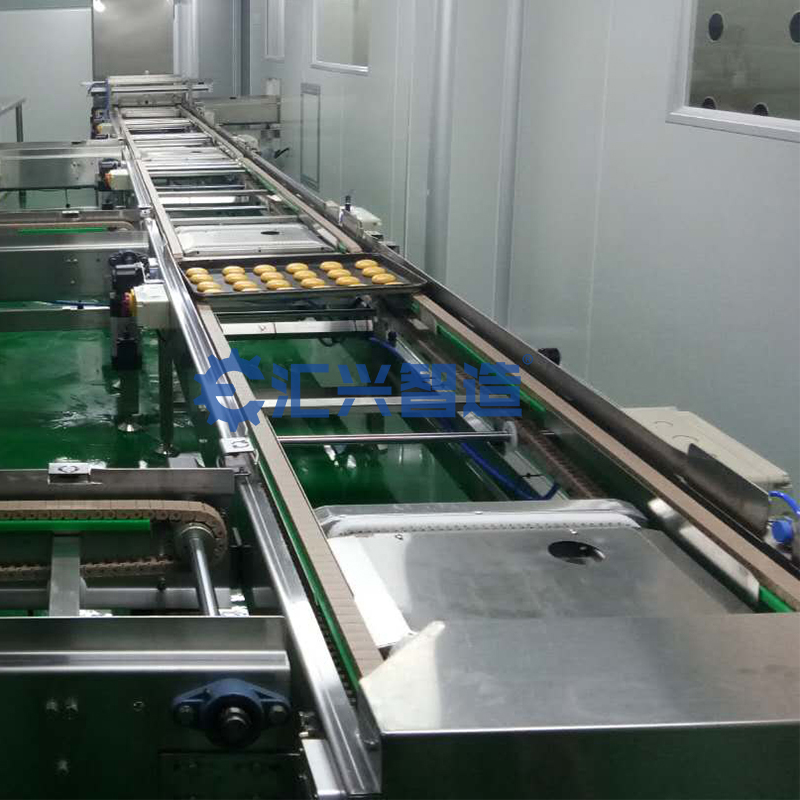 組成:頂板鏈輸送機以標準頂板鏈為承載面,由馬達減速機為動力傳動,運行在專用導軌中,根據工藝流程不同,頂板鏈分為轉彎及直線型。