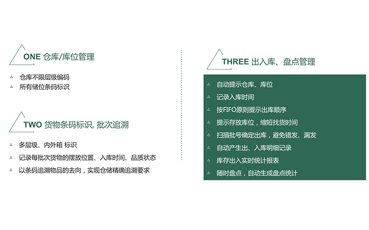 WMS倉(cāng)庫(kù)管理系統(tǒng)的簡(jiǎn)寫,是應(yīng)用條碼和自動(dòng)識(shí)別技術(shù)的現(xiàn)代化倉(cāng)庫(kù)管理系統(tǒng),能有效地對(duì)倉(cāng)庫(kù)流程和空間進(jìn)行管理,實(shí)現(xiàn)批次管理、快速出入庫(kù)和動(dòng)態(tài)盤點(diǎn)。快速幫助企業(yè)的物流管理人員對(duì)庫(kù)存物品的入庫(kù)、出庫(kù)、移動(dòng)、盤點(diǎn)、配料等操作進(jìn)行全方面的控制和管理,有效的利用倉(cāng)庫(kù)存儲(chǔ)空間,提高倉(cāng)庫(kù)的倉(cāng)儲(chǔ)能力,在物料的使用上實(shí)現(xiàn)先進(jìn)先出,終提高企業(yè)倉(cāng)庫(kù)存儲(chǔ)空間的利用率及企業(yè)物料管理的質(zhì)量和效率,降低企業(yè)庫(kù)存成本,提升企業(yè)市場(chǎng)競(jìng)爭(zhēng)力。