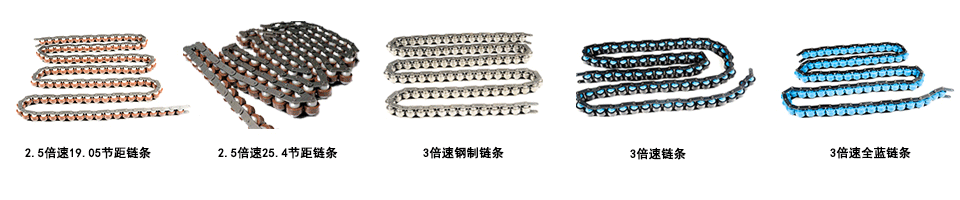 鏈條也叫滾子鏈是一種用于傳送機械動力倍速鏈條,廣泛應用與家庭、工業和農業機械,其中包括輸送機、繪圖機、印刷機、汽車、摩托車、以及自行車。它由一系列短圓柱滾子鏈接在一起,由一個稱為鏈輪的齒輪驅動。這是一個簡單,可靠,高效的動力傳遞裝置。