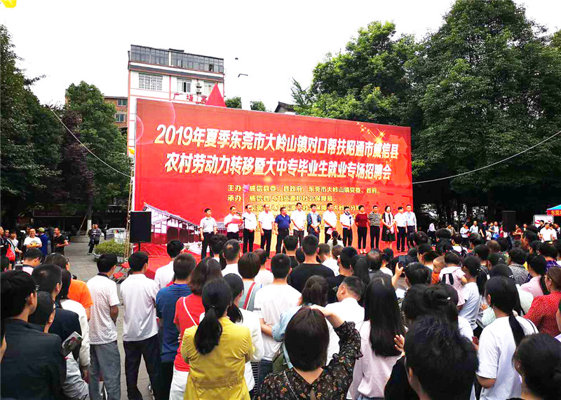 為進(jìn)一步做好威信縣勞動(dòng)力轉(zhuǎn)移就業(yè)工作,扎實(shí)推進(jìn)東莞大嶺山鎮(zhèn)對(duì)口幫扶威信扶貧工作,加強(qiáng)兩地的勞務(wù)協(xié)作,助推威信脫貧攻堅(jiān)。日前,威信縣委、政府及東莞市大嶺山鎮(zhèn)黨委、政府舉辦了“2019年夏季東莞市大嶺山鎮(zhèn)對(duì)口幫扶威信縣農(nóng)村勞動(dòng)力轉(zhuǎn)移就業(yè)專場(chǎng)招聘會(huì)”。