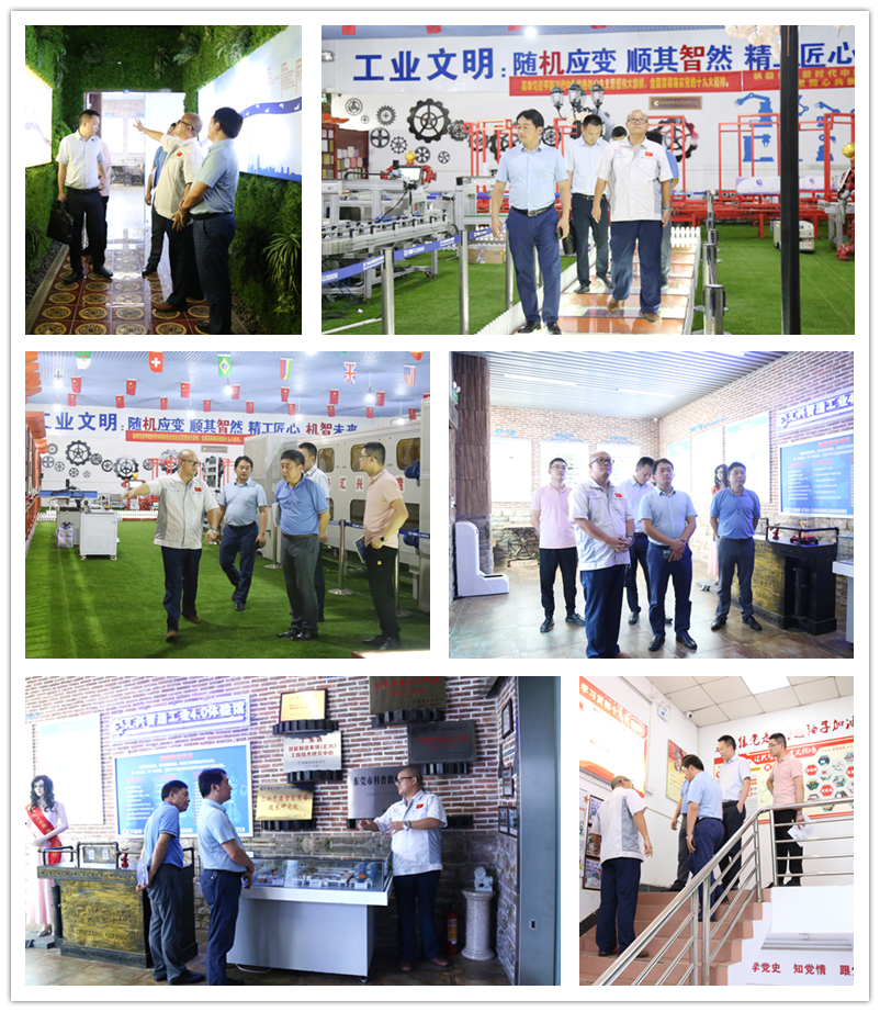 7月25日,重慶市西彭工業園區管理委員會黨工委副書記蔣小飛一行4人蒞臨廣東匯興精工智造股份有限公司交流指導。此次來訪受到了董事長鐘輝的熱情接待。蔣書記一行在董事長鐘輝的帶領下參觀了包括院士專家辦和上市辦在內的各職能辦公室、工程研發中心、中德智能裝備技術研究院、工業4.0體驗館、匯興學校和廠房車間,從匯興智造的發展歷程、經營策略、文化建設、生產狀況、銷售業績、科技創新、產研對接、人才引進和培育等作了全方位的匯報。