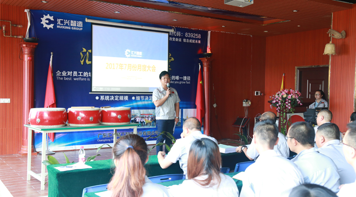 光陰似箭,轉(zhuǎn)眼間,2017年上半年已經(jīng)過去了。在2017年7月1日這個(gè)有著諸多紀(jì)念意義的日子里,廣東匯興精工智造股份有限公司(股票代碼:839258)月度大會(huì)在東莞總部勝利召開,匯興智造董事長鐘輝及公司全體員工精神抖擻、斗志昂揚(yáng)地參加了此次會(huì)議。大會(huì)在催人奮進(jìn)的匯興之歌中拉開了帷幕,人資行政部經(jīng)理袁侃主持本次會(huì)議。
