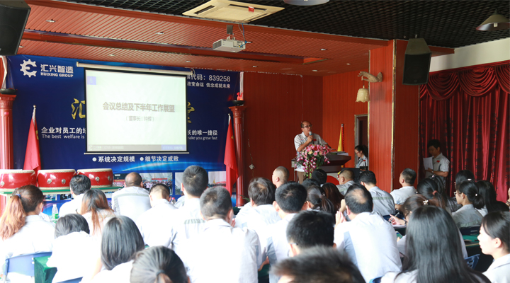 最后,由鐘輝董事長作會(huì)議總結(jié)及下半年的工作展望。回首上半年,經(jīng)過全體匯興人的共同努力,匯興智造的業(yè)績趕超去年一年,并再次交出了亮眼的成績單,以“優(yōu)等生”的身份成功晉級到新三板的創(chuàng)新層,這對公司未來的發(fā)展,特別是沖刺更高的資本巿場有著重要而深遠(yuǎn)的意義。作為植根于大嶺山的本土民營企業(yè),十七年來勤勤勉勉,絲毫不曾懈怠,也感恩大嶺山鎮(zhèn)這片熱土和好的營商環(huán)境,眾多領(lǐng)導(dǎo)干部、學(xué)者專家多次蒞臨匯興智造參觀調(diào)研和指導(dǎo),給匯興智造的發(fā)展建言獻(xiàn)策,增光添彩。匯興智造作為大嶺山鎮(zhèn)市級“倍增計(jì)劃”試點(diǎn)企業(yè),也是東莞市知識產(chǎn)權(quán)重點(diǎn)保護(hù)企業(yè),新近又被獲評為“2016年度廣東省守合同重信用單位”。今年五月份,企業(yè)倍增辦順勢成立,匯興智造力爭在兩年內(nèi),狠抓業(yè)績,推動(dòng)企業(yè)實(shí)現(xiàn)規(guī)模倍增、效益倍增、納稅倍增,一切以結(jié)果為導(dǎo)向,所有匯興人定以鐵一般的信仰,鐵一般的信念,鐵一般的紀(jì)律,鐵一般的擔(dān)當(dāng)、朝著既定的目標(biāo)奮勇前進(jìn)。