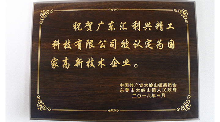 廣東匯利興精工科技有限公司被認定為國家高新技術企業