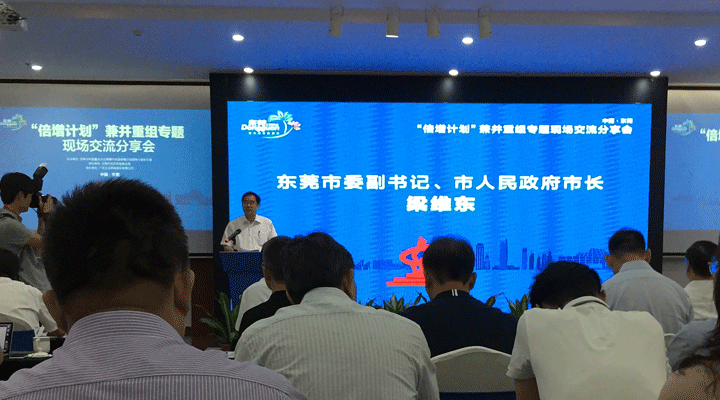 2017年6月6日,東莞市舉行“倍增計劃”試點企業(yè)集約化發(fā)展交流分享現(xiàn)場會,首場圍繞兼并重組專題分享經(jīng)驗、展開交流,引導企業(yè)深化對“倍增計劃”的理解,通過集約化發(fā)展實現(xiàn)規(guī)模與效益倍增。