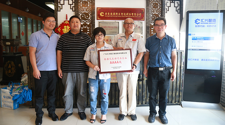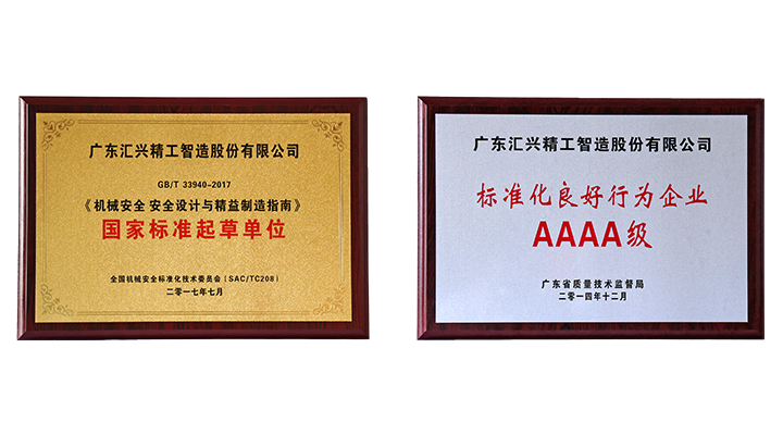 2017年8月30日,經(jīng)廣東省質(zhì)量技術監(jiān)督局、省標準化協(xié)會專家組的現(xiàn)場評審,廣東匯興精工智造股份有限公司(股票代碼:839258)再度獲評為“AAAA級標準化良好行為企業(yè)”及《機械安全 安全設計與精益制造指南》國家標準起草單位,在行業(yè)中到示范引領作用。
