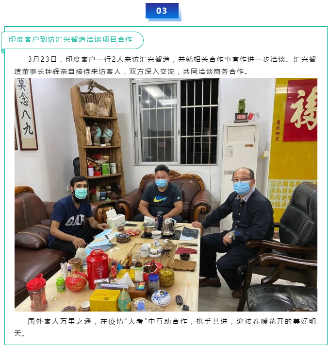 德不孤,必有鄰,德不孤,更必有貴客蒞“臨”,謙和為善的匯興智造,結識新朋友,不忘老朋友,這幾天企業到訪的重要客戶及朋友貴客非常之多,尊長來訪外賓到廠,群賢畢至少長咸集,內厚外斂平和達觀的匯興人,廣結善緣,相信會易得善果。