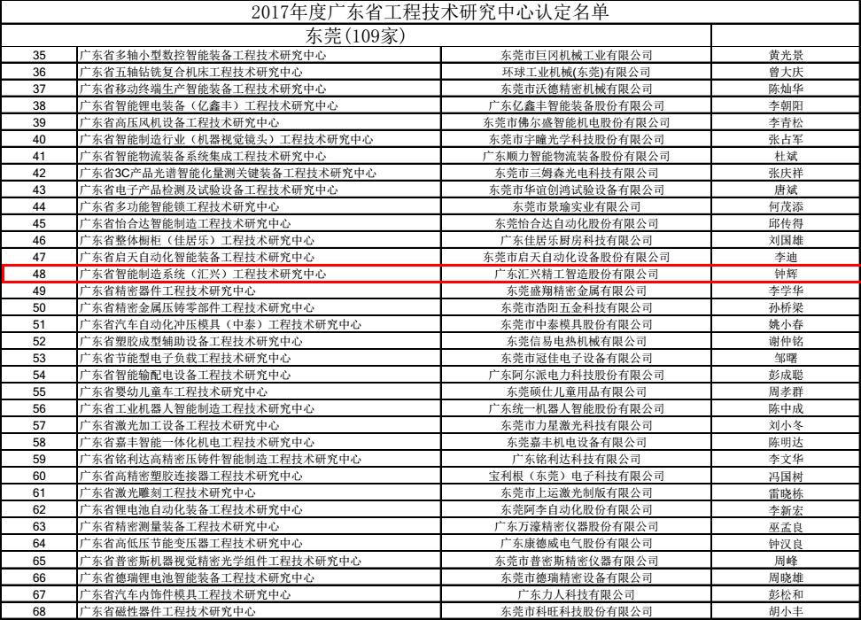 2017年9月25日,匯興智造設(shè)立的 “廣東省智能制造系統(tǒng)(匯興)工程技術(shù)研究中心”被廣東省科技廳認(rèn)定為“2017年......